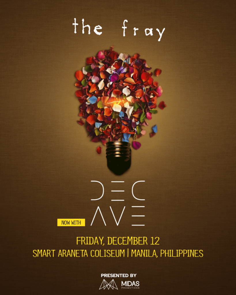 For the first time ever, the multi-platinum American band The Fray, known for global hits like “How to Save a Life” and “You Found Me”, and one of the Philippines’ most beloved OPM acts, December Avenue, famed for their heart-wrenching anthems “Kung ‘Di Rin Lang Ikaw” and “Sa Ngalan ng Pag-Ibig” will be in ONE SHOW!